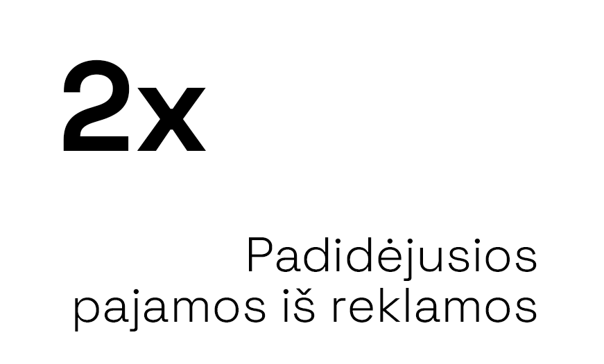 - Pasiekėme 2 kartus didesnes reklamos sugeneruotas pajamas.