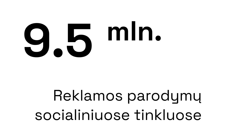 - Didelis pasiekiamumas socialiniuose tinkluose – tinkamai optimizuotos reklamos kampanijos ir nuomonės formuotojų įtraukimas padėjo pasiekti tikslinę auditoriją bei stiprinti žinomumą.