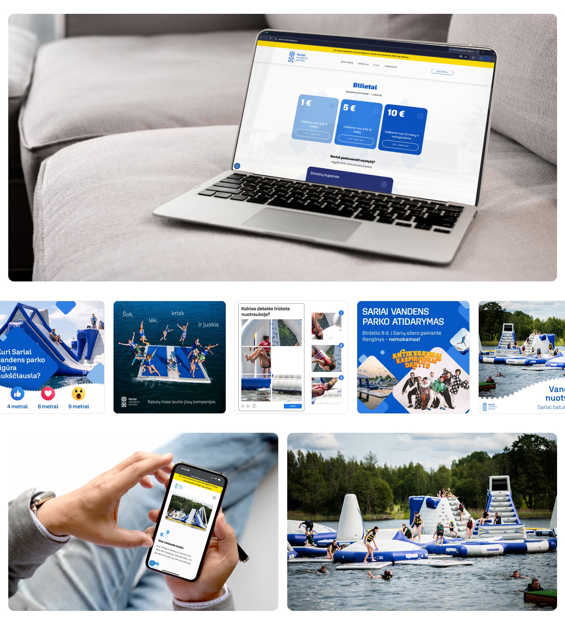 Sariai vandens parkas – vienas didžiausių atvirų vandens batutų parkų Lietuvoje, įsikūręs Sarių ežero pakrantėje, Švenčionių rajone. Tai visiškai naujas prekės ženklas vasaros pramogų rinkoje, kurį nuo pirmosios dienos lydėjome į startą – nuo svetainės kūrimo iki reklamos strategijos ir nuoseklios sezono komunikacijos.